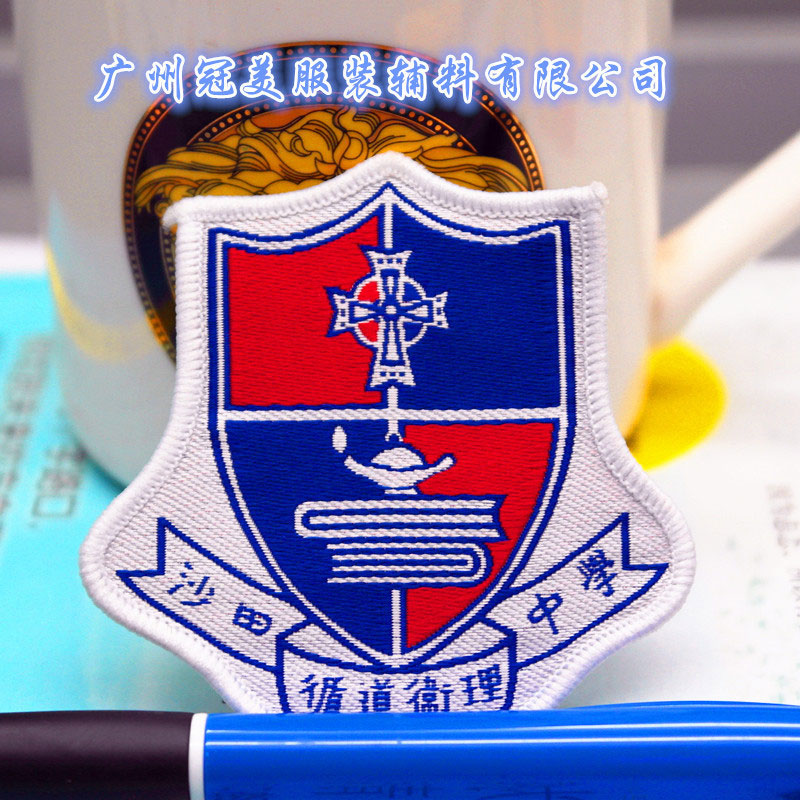 • 魔術(shù)貼防皺不變形臂章異形滌綸花鎖邊織章保安款帶別針標(biāo)識